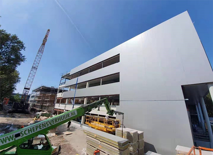 聚氨酯夾芯板主要應用于工業廠房、倉庫的屋面和外墻。過去的工業廠房屋面多采用預制混凝土板或石棉板。隨著輕鋼結構的迅速推廣,聚氨酯夾芯板也以其多項顯著的優勢取代了上述2種材料。在提供更好隔熱效果的同時,聚氨酯夾芯板配合已成熟發展的輕鋼結構,能夠體現輕鋼體系輕質、快速、效率高、布置靈活等一系列優勢,因而在單層廠房建筑中已成為先選擇的方案。而對于多層工業廠房,除了頂屋的屋面可采用夾芯板外,外墻也可利用聚氨酯夾芯板作靈活的布置,通過彩涂板多變的色彩和形狀達到美化建筑外觀的目的。對于恒溫恒濕要求的工業建筑,采用熱工性能優于磚墻的夾芯板作為圍護材料,可大大節約建成后的運營成本。